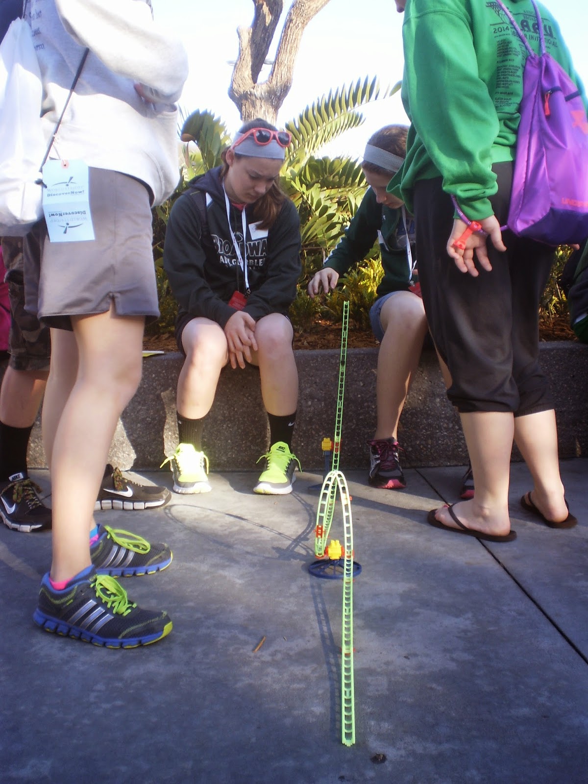 No one liked the big crane towering over the spirals and taking away the magic. Our first stop took us to Tomorrow land and Space Mountain where we had a chance to ride the rollercoaster first with the lights on and then again with the lights of. This gave us a chance to make a hypothesis and compare the differences of the ride. We learned that the top speed is 27mile/hour, the ride takes 150 seconds, the highest point is 70.5 feet and the biggest drop is 23 feet and with the lights off it makes the ride feel so much faster and bigger. Outside we continued our discussion about roller coasters testing the amount of potential and kinetic energy it takes for a marble to complete one of three miniature coasters. Buzz Light Year and Pirates of the Caribbean taught us about Disney’s Animatronics through hydraulic and pneumonic movement. Riding Big Thunder Mountain Rail road – another one of Disney’s steel tubular coasters – we experienced centripetal force and g-force in person. Some of us even had some airtime. We also managed to squeeze in a visit to the Haunted Mansion before it was time for lunch. Lunch and free time were combined. Again a large group of our boys decided to splurge and spend $232 on lunch at this Italian place. After their meal cards they still had a $80 bill to pay. We also managed to get a few laughs in with the Monster Inc. Laugh floor. Some of us did some shopping, watched Mickey and Minnie and their friends put on a show at the Castle and watched the mini celebration parade. All of our first time Disney visitors received a special 1st time visitor button and Tristan was given a Happy Birthday button since today was his 14th birthday.